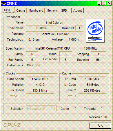 Результат разгона Intel Celeron (Tualatin)