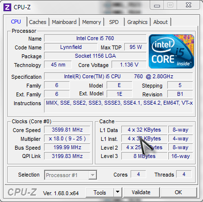 | Модель процессора | i5-760 |