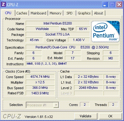 Результат разгона Intel Pentium Dual-Core (Wolfdale-2M)
