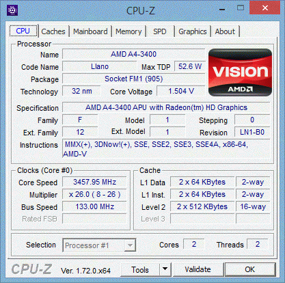 | Модель процессора | A4-3400 |