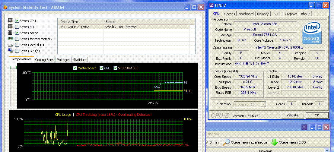 Результат разгона Intel Celeron D (Prescott-256)