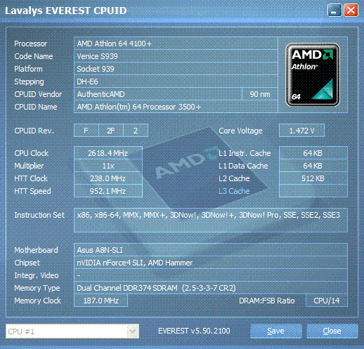 | Процессор (ядро) | AMD Athlon 64 (Venice) |