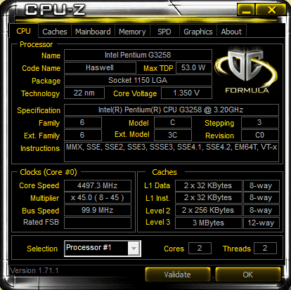 | Процессор (ядро) | Intel Pentium G3258 (Haswell) |