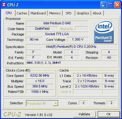 | Процессор (ядро) | Intel Pentium D (SmithField) |