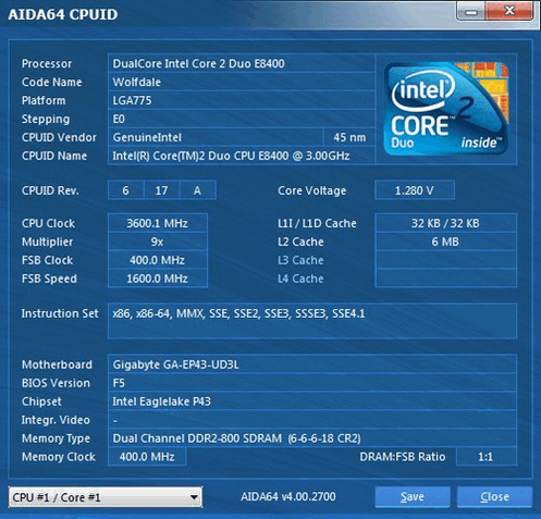 | Модель процессора | E8400 |