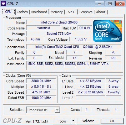 Результат разгона Intel Core 2 Quad (Yorkfield)