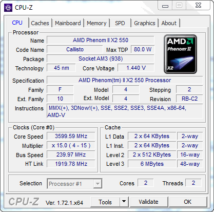 | Процессор (ядро) | AMD Phenom II X2 (Callisto) |