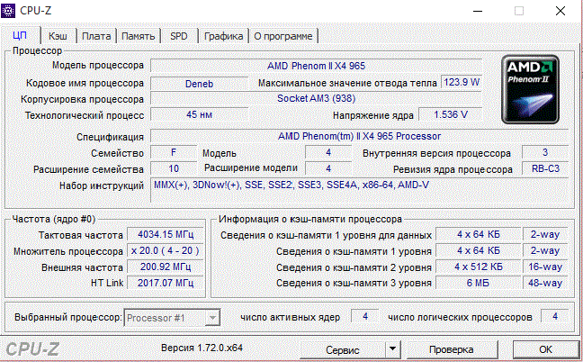 | Процессор (ядро) | AMD Phenom II X4 (Deneb) |