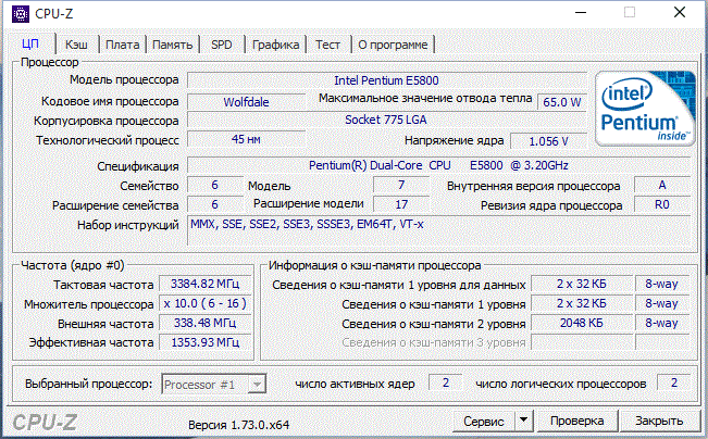| Модель процессора | E5800 |