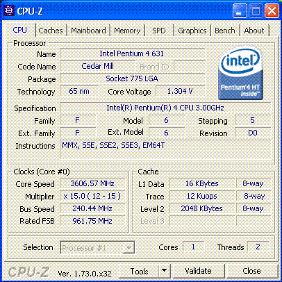 | Процессор (ядро) | Intel Pentium 4 (CedarMill) |