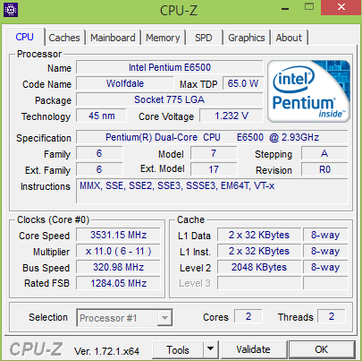 | Процессор (ядро) | Intel Core 2 Duo (Wolfdale) |