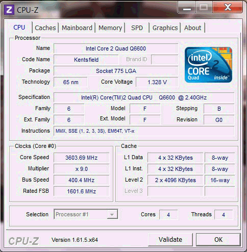 | Процессор (ядро) | Intel Core 2 Quad (Kentsfield) |