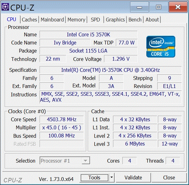 | Модель процессора | i5-3570K |