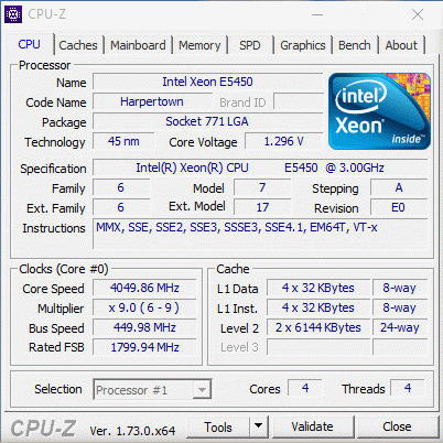 | Модель процессора | E5450 E0 |