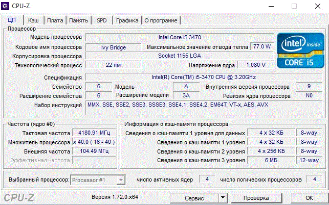 | Процессор (ядро) | Intel Core i3/i5/i7 (Ivy Bridge; LGA1155) |