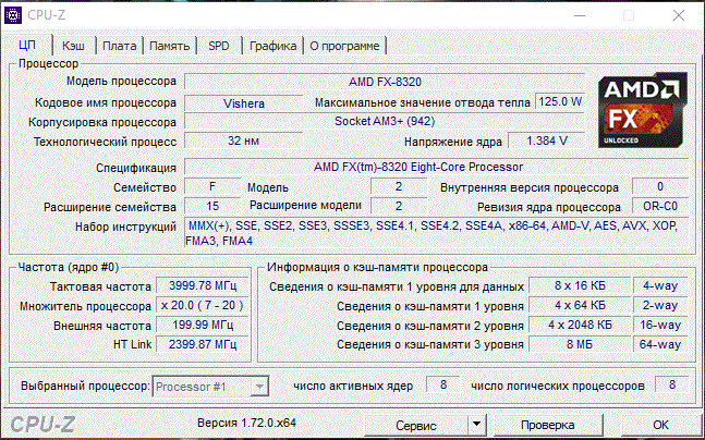 | Модель процессора | FX-8320 |