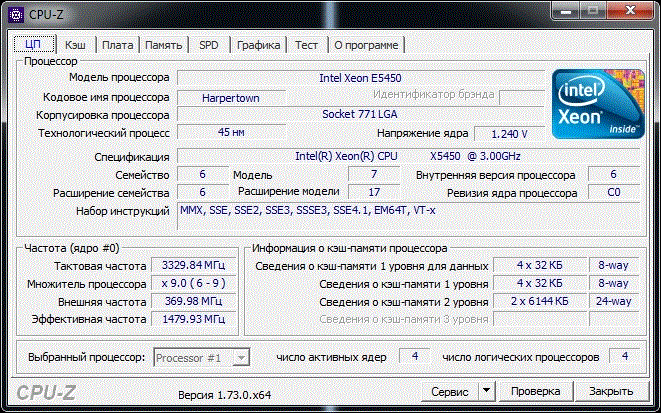 | Модель процессора | X5450 |