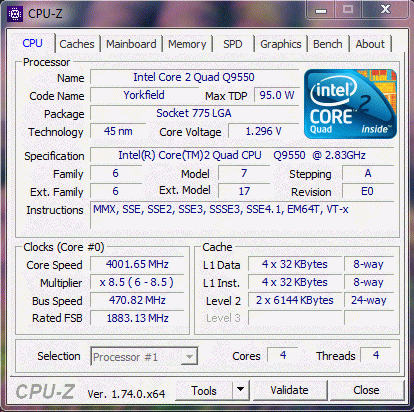 | Модель процессора | Q9550 |
