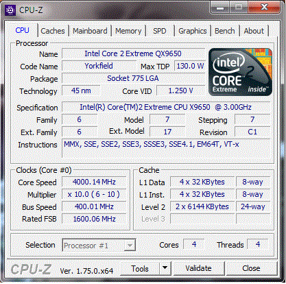 | Модель процессора | QX9650 |
