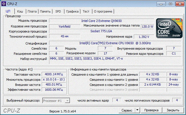 Результат разгона Intel Core 2 Quad (Yorkfield)