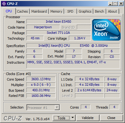 | Модель процессора | E5450 C0 |