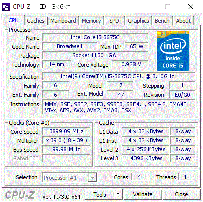 | Модель процессора | Core i5 - 5675C |