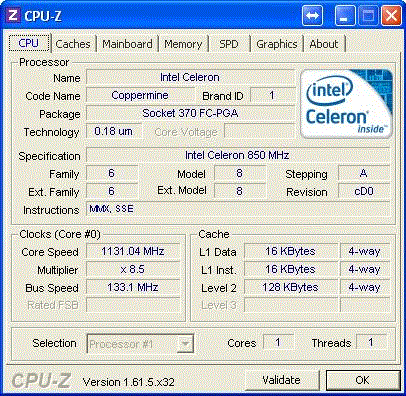 | Процессор (ядро) | Intel Celeron (Coppermine-128) |