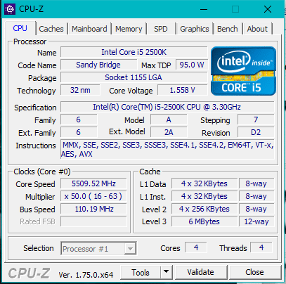 | Модель процессора | i5-2500K |