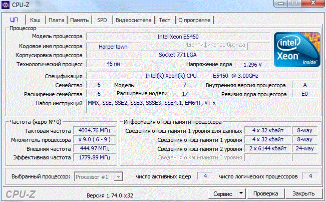 | Модель процессора | E5450 |