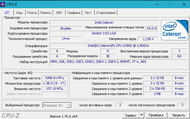 Результат разгона Intel Celeron (Skylake; LGA1151)