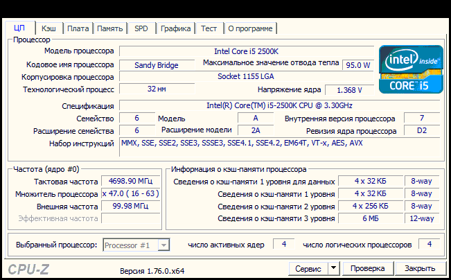 | Модель процессора | i5-2500K |