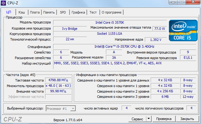 | Модель процессора | i5 3570K |