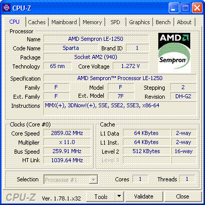 | Процессор (ядро) | AMD Sempron (Sparta) |