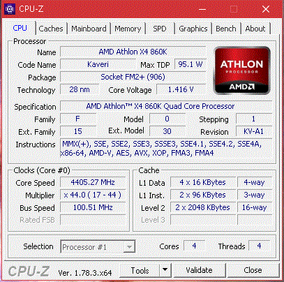 Результат разгона AMD Athlon II X4 (Kaveri)