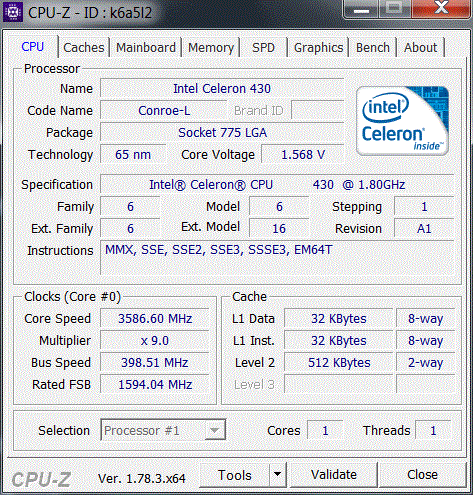 Результат разгона Intel Celeron (Conroe-L)