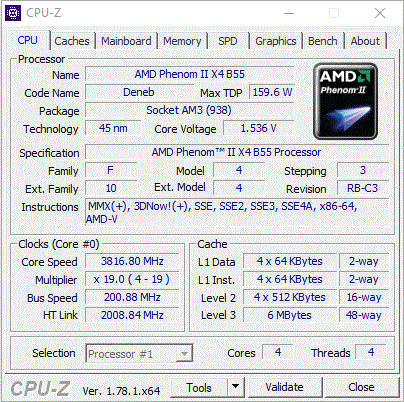 | Процессор (ядро) | AMD Phenom II X4 (Deneb) |