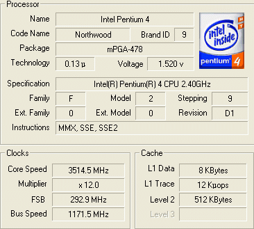 | Процессор (ядро) | Intel Pentium 4 (Northwood) |