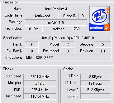 | Процессор (ядро) | Intel Pentium 4 (Northwood) |