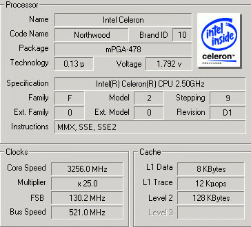 Результат разгона Intel Celeron (Northwood-128)