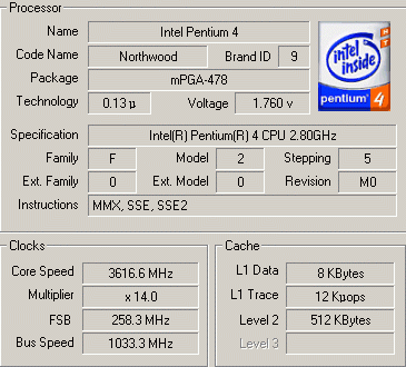 | Процессор (ядро) | Intel Pentium 4 (Northwood) |
