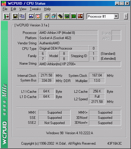 Результат разгона AMD Athlon XP (Thoroughbred)