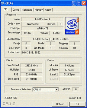 Результат разгона Intel Pentium 4 (Northwood)