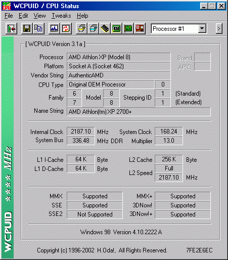 Результат разгона AMD Athlon XP (Thoroughbred)
