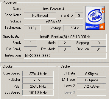 | Процессор (ядро) | Intel Pentium 4 (Northwood) |