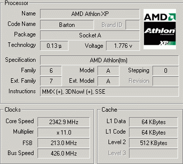 | Процессор (ядро) | AMD Athlon XP (Barton) |