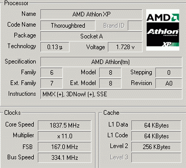 | Процессор (ядро) | AMD Athlon XP (Thoroughbred) |