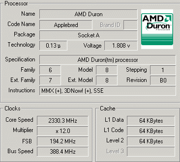 | Процессор (ядро) | AMD Duron (Applebred) |