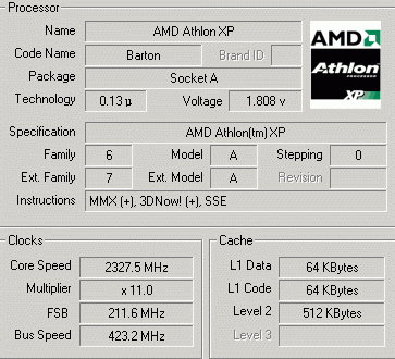 | Процессор (ядро) | AMD Athlon XP (Barton) |