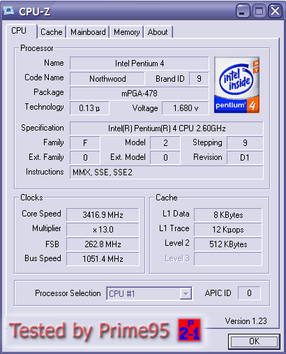 Результат разгона Intel Pentium 4 (Northwood)