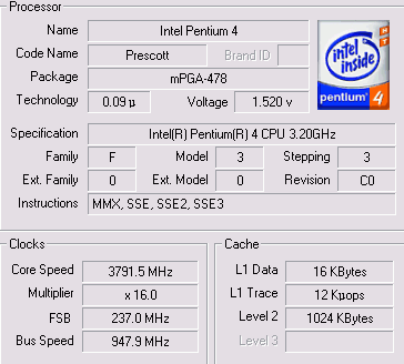 Результат разгона Intel Pentium 4 (Prescott)